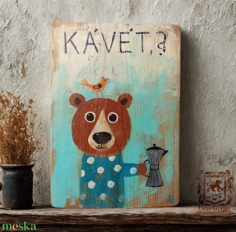 Ki kér Kávét? - Rusztikus Fatábla, Vicces Ajándék ötlet - Egyedi Falidísz, Konyha, Medve, Mackó
