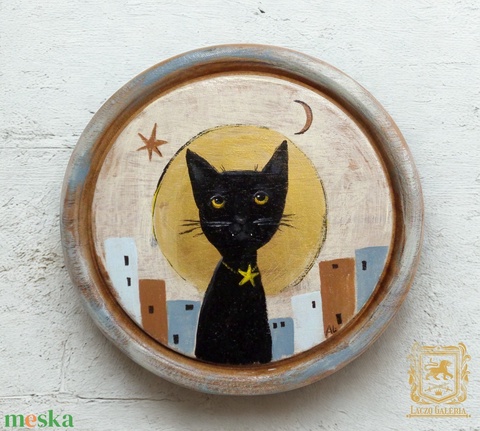 Kormi a városi naplementében - Rusztikus Fatábla, Ajándék ötlet - Egyedi Falidísz, Macska, Cica, Fekete macska