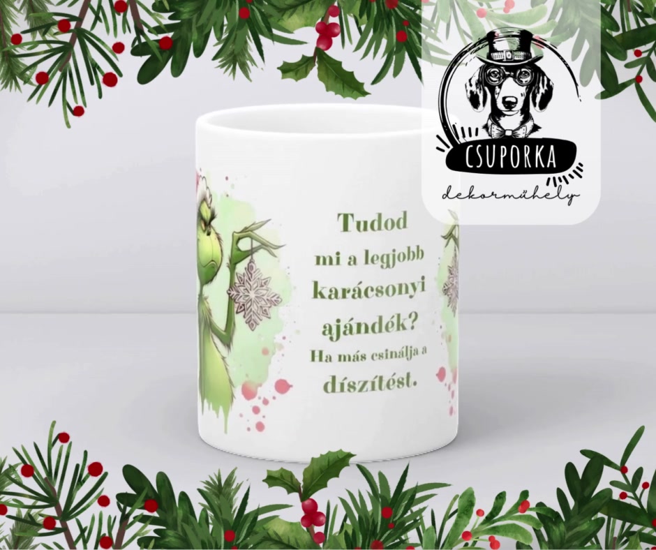 Grincs/Grinch bögre - Grinch dísszel