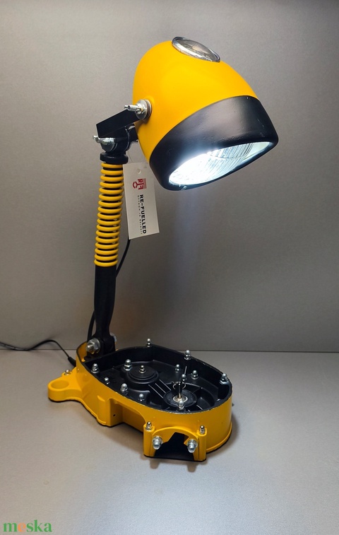 - Anyaga: motor alkatrész, lámpafej, rugóstag, led izzó, motorblokk, kulcsos kapcsoló