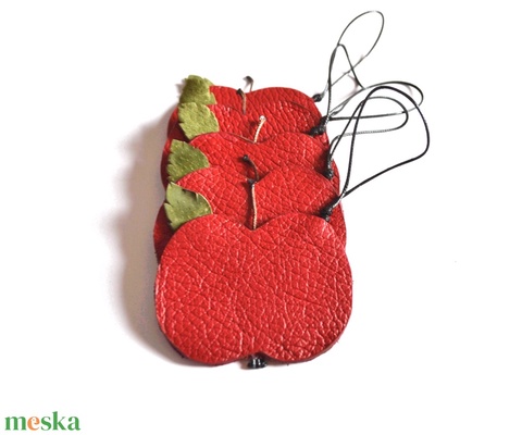 Piros almák-karácsonyfadísz csomag valódi bőrből