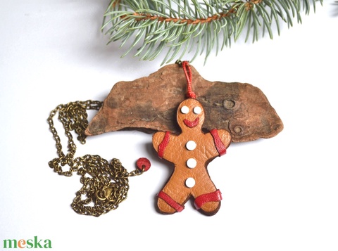 Mézeskalács baba-hosszú nyaklánc valódi bőrrel