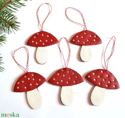 Gombák-karácsonyfadísz csomag valódi bőrből