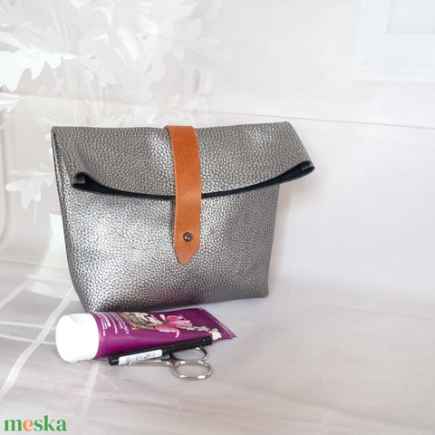 Marhabőr sminktáska, Ezüst színű olasz marhabőr neszeszer, piperetáska, kozmetikai táska