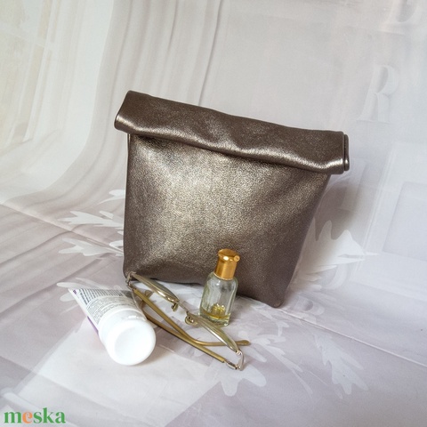 Marhabőr sminktáska, Bronz színű olasz marhabőr neszeszer, piperetáska