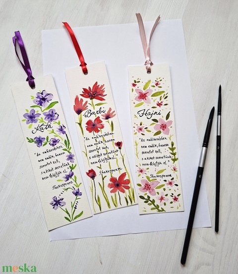 Akvarell virágok, levelek- Kézzel festett könyvjelzők idézettel -virágok - NÉVRE SZÓLÓAN!