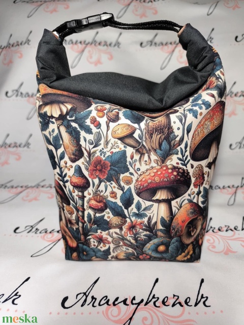 Gombás-Vízálló uzsonnás tasak kézben vihető-PUL béléssel-Vállon is viheted egy megvásárolható pánttal