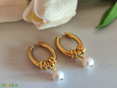 Egyedi, ovális, nemesacél fülbevaló, természetes gyönggyel!