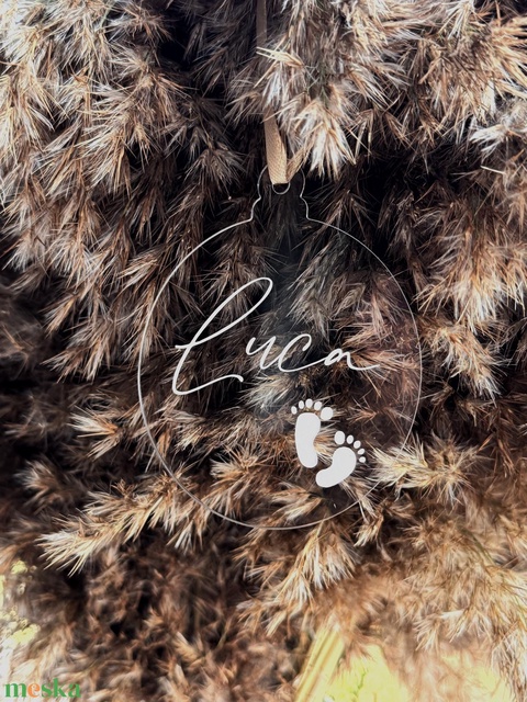 Egyedi neves átlátszó plexi karácsonyfadísz, egyedi karácsonyfadísz névvel, saját szöveggel