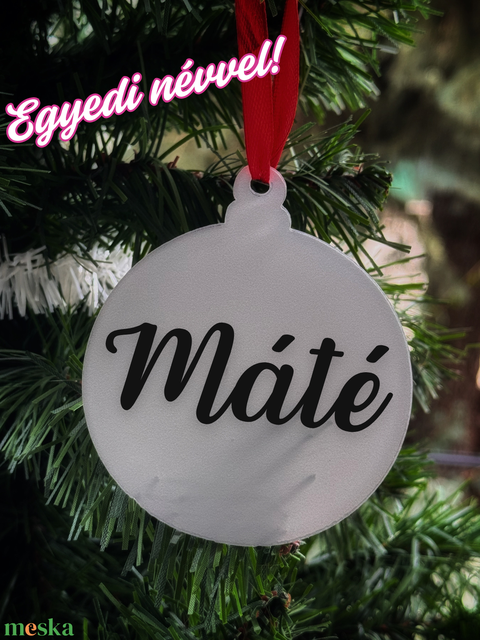 Egyedi neves karácsonyfadísz - tejfehér, egyedi karácsonyfadísz névvel, saját szöveggel