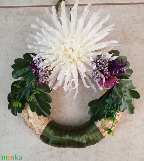 - Anyaga: szalmakoszorú, szaténszalag, művirág