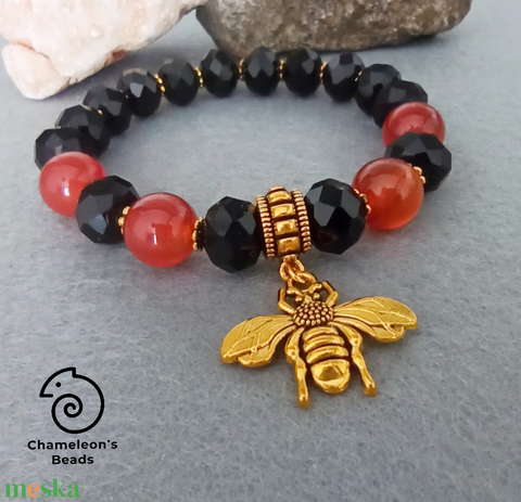 - Anyaga: kalcit fazettált gyöngy, antik arany charme, antik arany köztes, karneol gyöngy