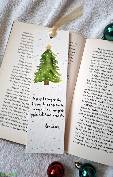 Karácsonyfa- Kézzel festett könyvjelző idézettel -karácsonyi könyvjelző NÉVRE SZÓLÓAN!