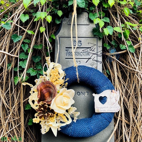 Kék koszorú angyalszárny dísszel