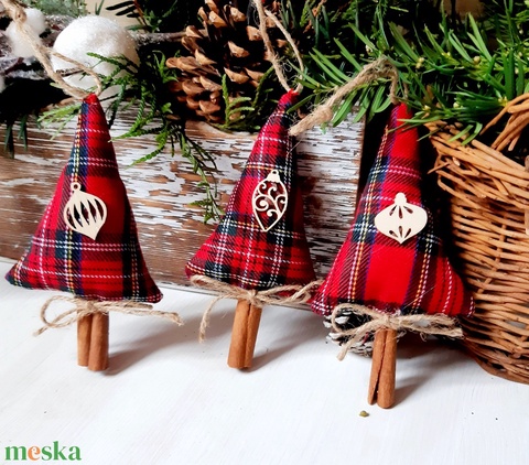 Fahéjillat- fenyők fahéjjal- karácsonyi country dekoráció, díszek 5db
