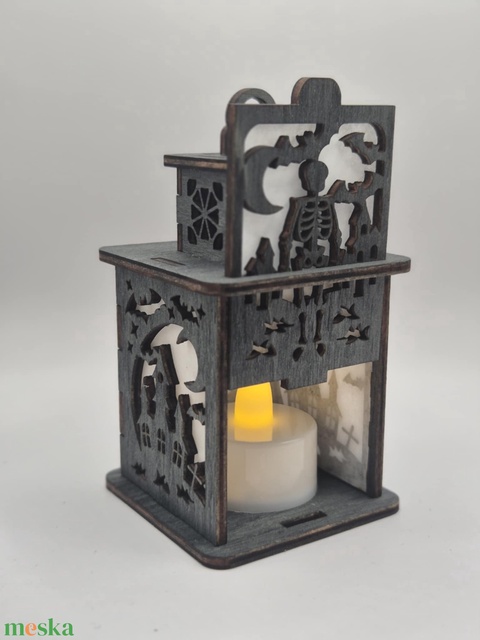 Csontvázas halloweeni lámpás