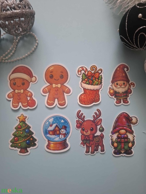 Cuki karácsonyi vinyl matricák – vízálló, csillogós kivitel