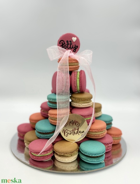 - Anyaga: mandulaliszt, cukor, tojásfehérje, csokoládé, tejszín, ételszinező