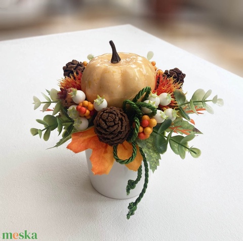 Őszi asztaldísz tökkel levelekkel