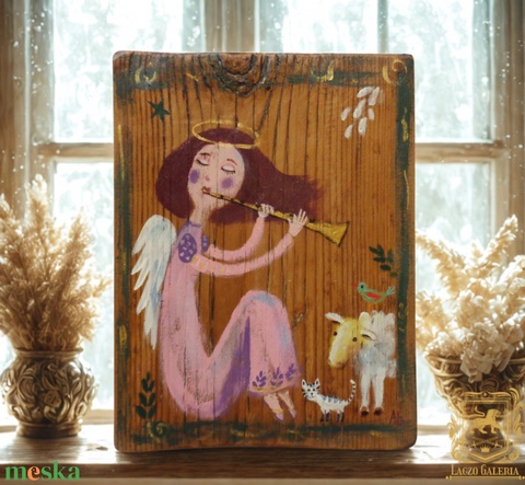 Harsona - Rusztikus Festett Fa, Dekoráció - Falra akasztható - Ajándék ötlet, Angyal, Bárány, Cica