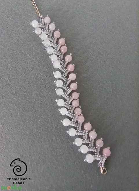 "Empathy" empátia növelő, nyugtató hatású rózsakvarc és hókvarc karkötő