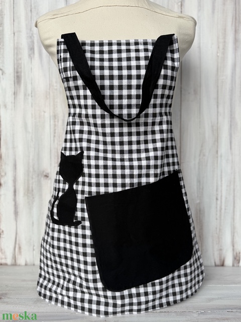 Boszi kötény felnőtt- kockás alapon fekete