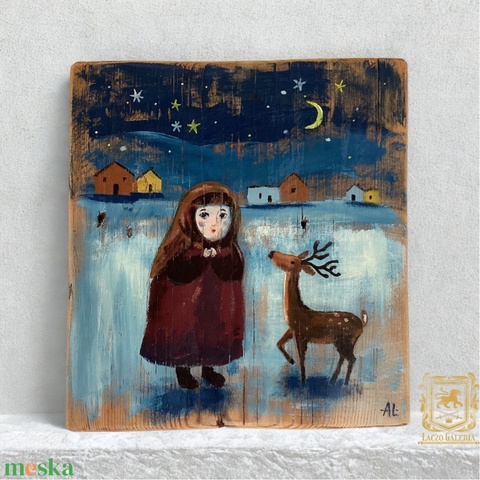 Eltévedt csillagok - Rusztikus Fatábla, Ajándék ötlet - Egyedi Falidísz - Szarvas, Őzike