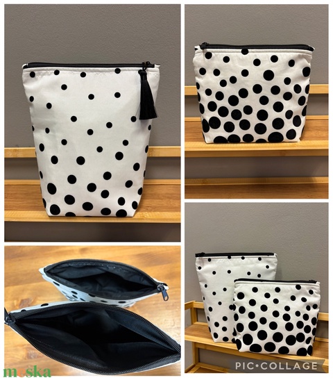 Fekete Bársony pöttyös szatén neszeszer 2db, szettben