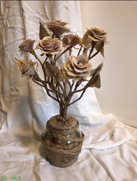 Vászon rózsa asztali virágdísz