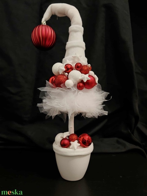 Piros-fehér grincsfa fehér tüll szoknyával