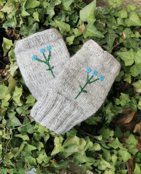 Ujjatlan kézi kötésű kesztyű hímzett virágokkal