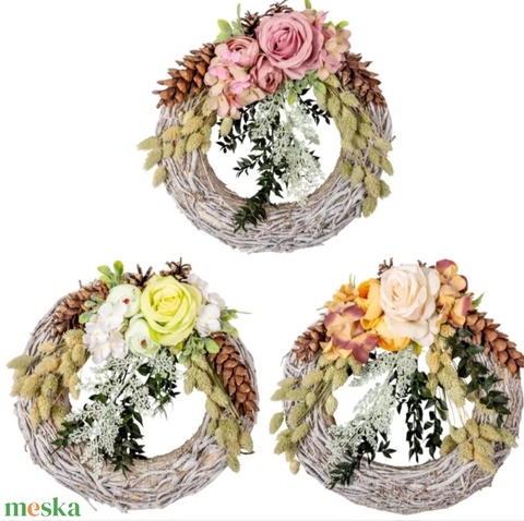 - Anyaga: koszorú, szárazvirág, ragasztó