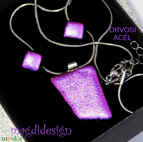Lila dichroic üvegékszer szett nyaklánc, stiftes fülbevaló