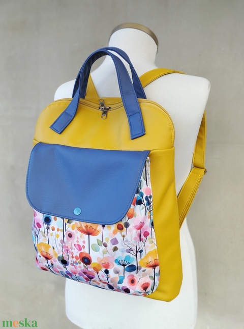 Mustársárga textilbőr virágos hátizsák
