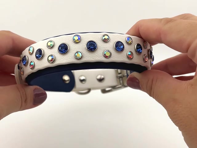 Öltöztesd kutyádat a csillogás és elegancia tökéletes kombinációjával, ezzel a kézzel készült, luxus nyakörvvel! Tartós, vízálló Biothane anyagból készül, amely egyszerre erős, kényelmes és stílusos. A nyakörvet színjátszó Crystal AB és Zafír árnyalatú, ragyogó strasszkövek díszítik, míg a rozsdamentes acél szerelékek biztosítják a hosszan tartó fényt és minőséget. Ideális mindennapi sétákhoz, különleges alkalmakra vagy ha szeretnéd, hogy kedvenced igazán kitűnjön a tömegből – ez a méretre szabható nyakörv eleganciát, tartósságot és páratlan megjelenést kínál.