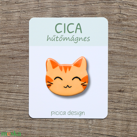 Cica hűtőmágnes - Narancs cirmos Vidám
