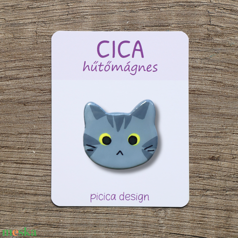 Cica hűtőmágnes - Szürke cirmos Kancsal