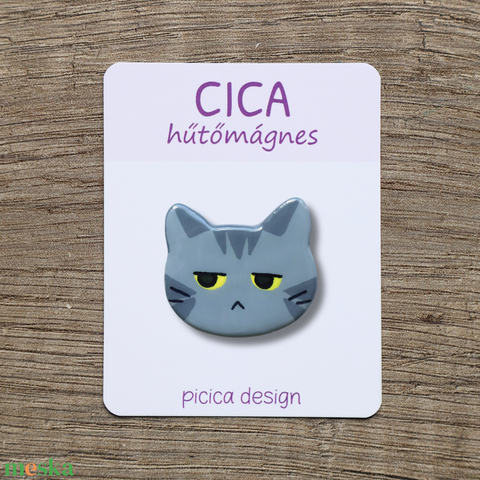 Cica hűtőmágnes - Szürke cirmos Morcos