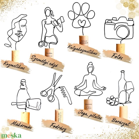 Foglalkozásokat, szakmákat szimbolizáló kézműves drótfigurák - kreatív ajándék fodrásznak, műkörmösnek, kozmetikusnak
