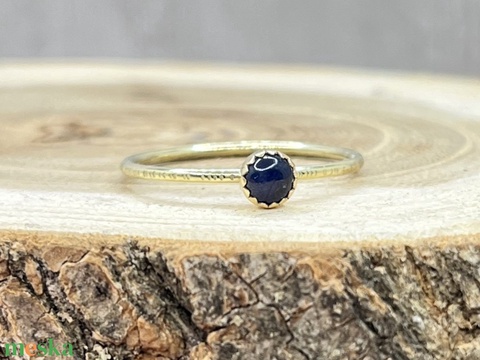 - Anyaga: 14 karátos sárga arany, kő, arany, zafír