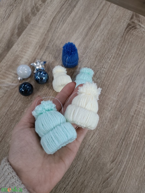 Kézzel készült sapka alakú karácsonyfadísz (gyapjú tartalmú fonalból, választható színben)