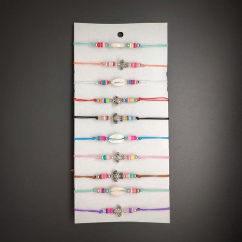 Állítható teknős kagyló cérna karkötő csomag 10db