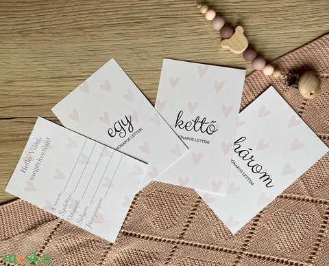 Pasztell rózsaszín mérföldkőkártya szett babáknak – letisztult, szív mintás babaemlék kártyák