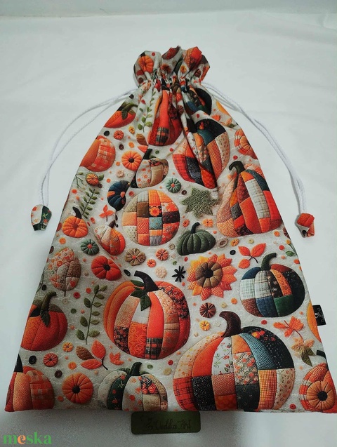 Kenyeres zsák PUL béléssel, patchwork tököcskék..