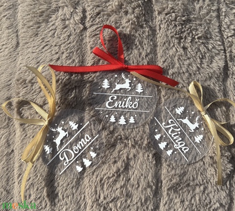 Személyre szabható akril karácsonyfadísz – névvel