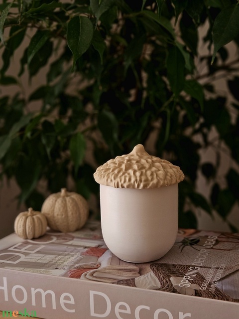 Kézzel készült makk alakú akrilgyanta tároló az őszi hangulat megteremtéséhez.