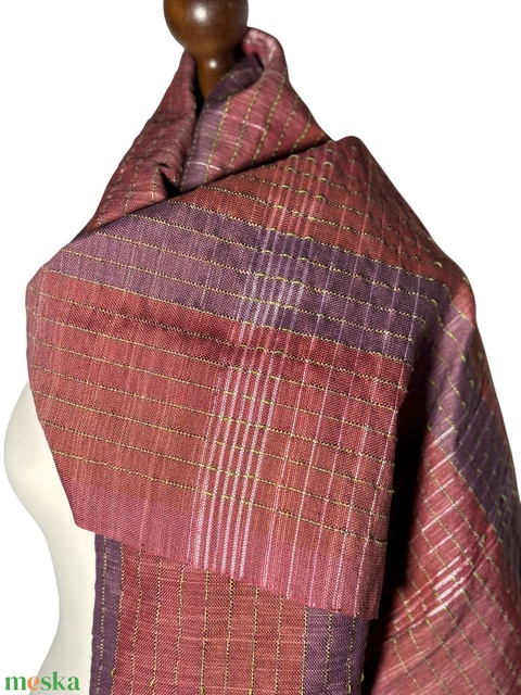 Ha egy olyan ragyogó sálat keresel, amely tökéletes eleganciát és meleget biztosít, ez a kézzel szőtt bordó Selyem kendő tökéletes választás. Gyönyörű fénye van, és kellemes a tapintása. A kendő szövésének bonyolult technikája egyedi, textúrált mintát hoz létre, így ez a kiegészítő valóban egyedülálló bármely ruhatárban.