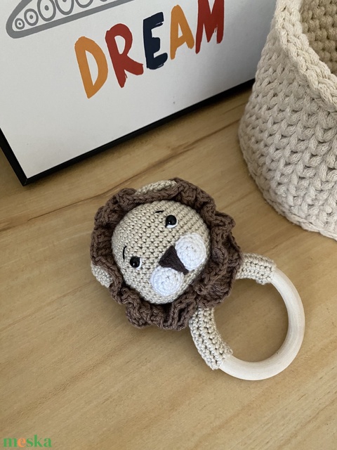 Horgolt oroszlán csörgő