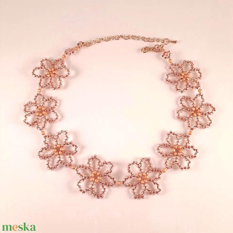 Gyöngyös nagy virágos, réz színű, rövid állású nyaklánc