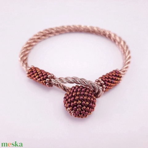 Gyöngyös bogyós, metál lilásbordó, arany zsinóros karkötő